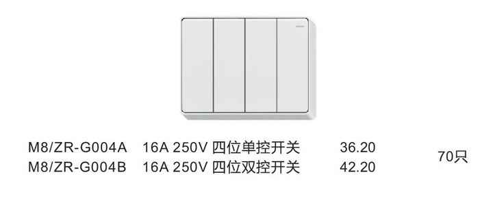 16A 250V四位单(双)控开关